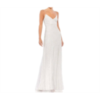 MAC DUGGAL sequin spaghetti strap gown in pearl