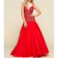 MAC DUGGAL beaded ball gown in red/nude