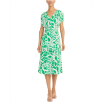 Maggy London Womens Printed V Neck Midi Fit & Flare Dress