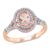 Mimi & Max 3/4ct tgw oval morganite 1/4ct tw diamond double halo ring ...
