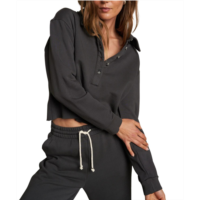 Perfectwhitetee vinny fleece henley sweatshirt in vintage black
