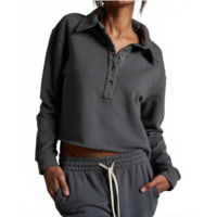 Perfectwhitetee vinny fleece henley sweatshirt in charcoal