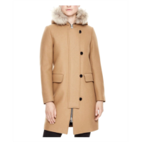 Sandro womens kurt wool coat with fur trim hood 4 buttons