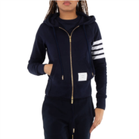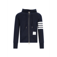 Thom Browne navy 4-bar loopback full zip hoodie