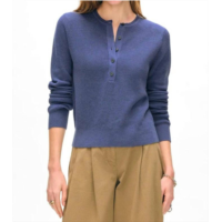 White Warren fine cotton blend ribbed henley sweater in vintage indi...