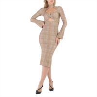 Burberry ladies black fringe detail silk sleeveless midi dress