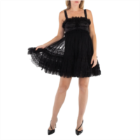 Burberry ladies black geometric lace dress with gathered-sleeves