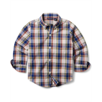 Janie and Jack Plaid Twill Button Down Shirt (Infant)