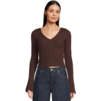 Womens Madewell Ribbed Merino Flare Sleeve Vneck Clari
