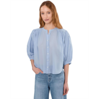 Madewell Shirred Crewneck Button-Up Top