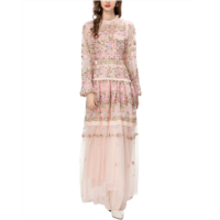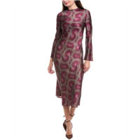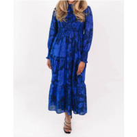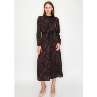 Yalnewyork long sleeve burgundy floral shirt midi dress