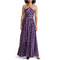 Hutch womens dolly halter maxi dress in purple tonal stripe