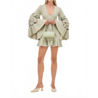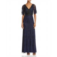 AIDAN MATTOX v-neck cape sleeve embellished dress in twilight
