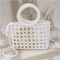 FASHNZFAB elegant pearl beaded round handle lattice handbag / cros...