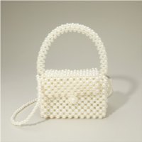 FASHNZFAB pearl beaded mini top handle flap box handbag / crossbod...