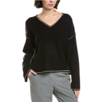 Vince Camuto v-neck contrast crochet sweater