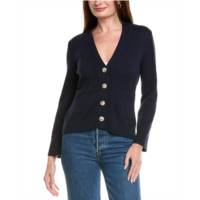 Forte Cashmere wool & cashmere-blend short rib v-neck button cardigan...