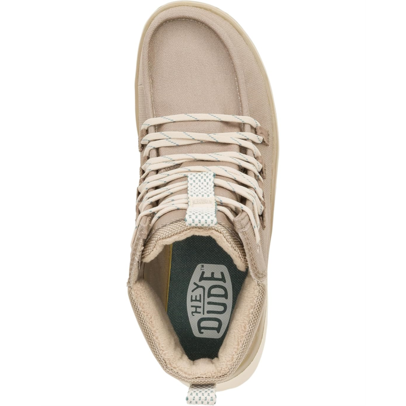 - Walk into the Hey Dude Wendy Peak Apres Coated Twill, where water-resistant, premium leather uppers keep your feet warm and stylish, no matter the weather. Enjoy the fabric lining and cushioned EVA insole for ultimate comfort, while the lightweight, flexible rubber outsole ensures effortless movement. With a round toe and easy slip-on design, these ankle-high booties offer practical elegance and seasonal flair with lace design, making them your go-to choice for any adventure.