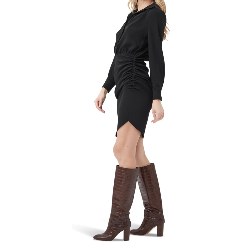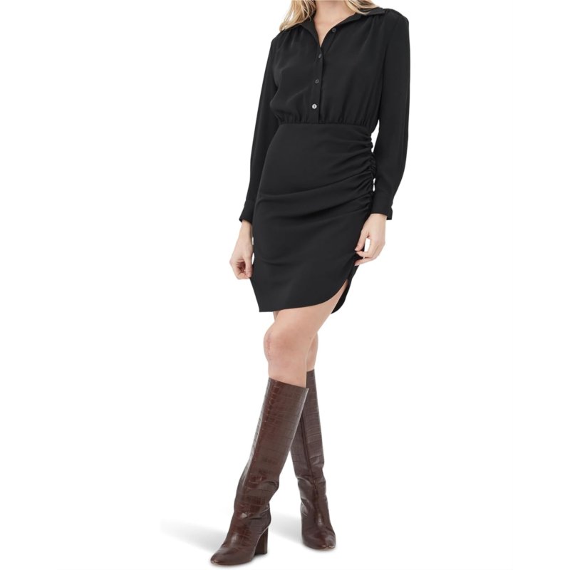 Get ready to turn heads wearing the Trina Turk Kamari Dress! This stunning dress features a collared neckline with a half-button placket, long sleeves with buttoned cuffs, and a flattering blouson waist. The ruching on the side adds a touch of elegance to this chic and versatile piece.
