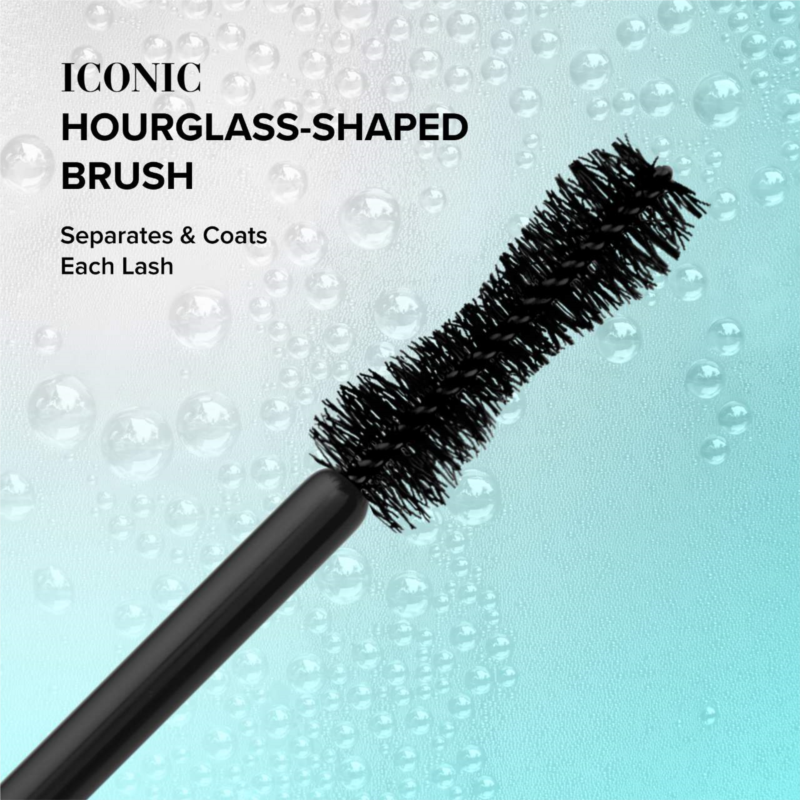 The hourglass-shaped brush separates, coats, and curls each lash to voluptuous perfection. This waterproof formula creates lashes that are full, defined, and stretched to unbelievable lengths for the most intense black, oversized, multidimensional lashes.