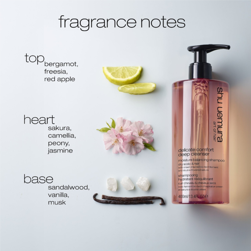 - Japanese Cherry Blossom: Rich in essential minerals and antioxidants to deeply cleanse and leave the scalp and hair feeling well hydrated.