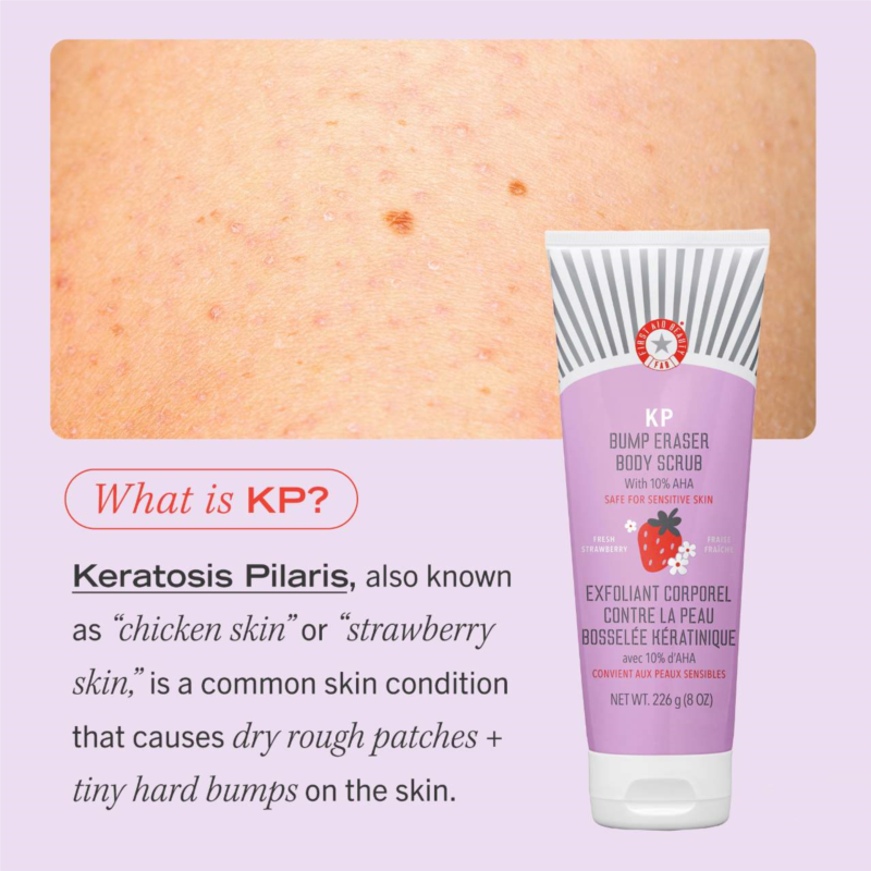 What it is:?A body scrub that sweeps away dry, rough bumps associated with KP and?strawberry skin for a smoother, healthier, more radiant look.
