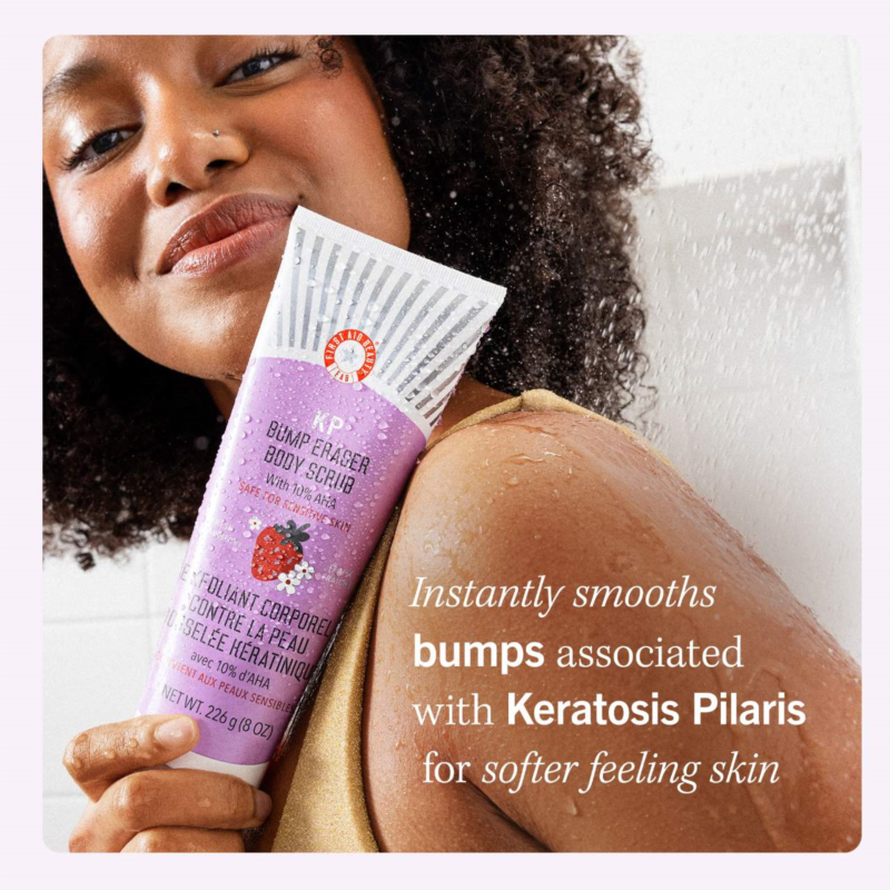 What it is:?A body scrub that sweeps away dry, rough bumps associated with KP and?strawberry skin for a smoother, healthier, more radiant look.