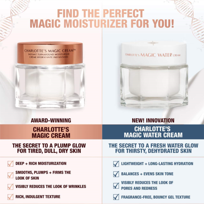 What Else You Need to Know:This product started it all. Frustrated by moisturizers that didn''t provide a glowing base, Charlotte created her own to transform models'' and celebrities'' skin in an instant. Magic Cream floods skin with moisture, making it appear plumper and smoother, while transforming the look over time.