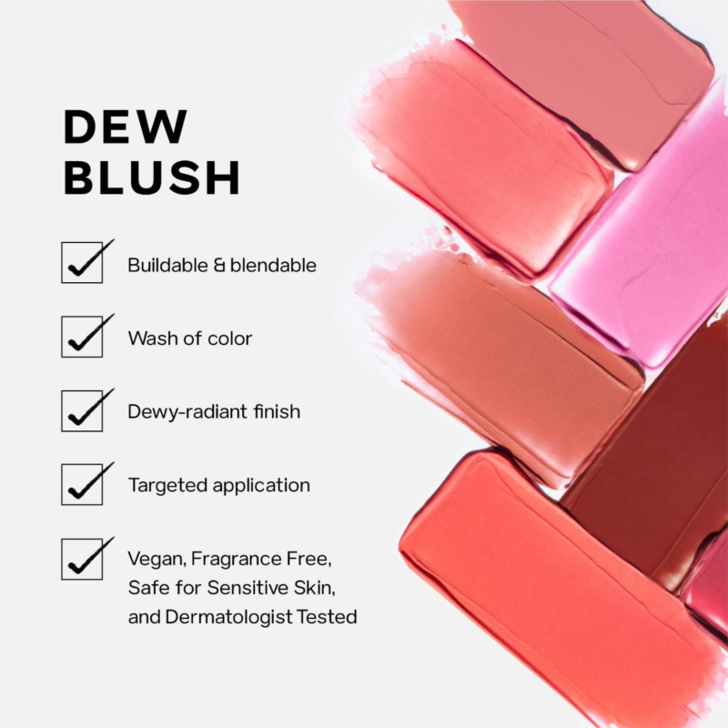 What Else You Need to Know: Dew Blush is packed with skin-loving ingredients like Plant-Derived Glycerin and Licorice Root Extract for smooth, dewy and nourished skin. Say goodbye to harsh lines, our creamy formula blends seamlessly for a flush of natural color that''s never patchy or streaky. The chunky doe-foot makes targeted application easy and allows you to build shades to your desired level. Dermatologist tested and safe for sensitive skin.