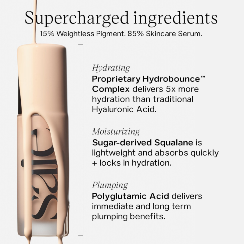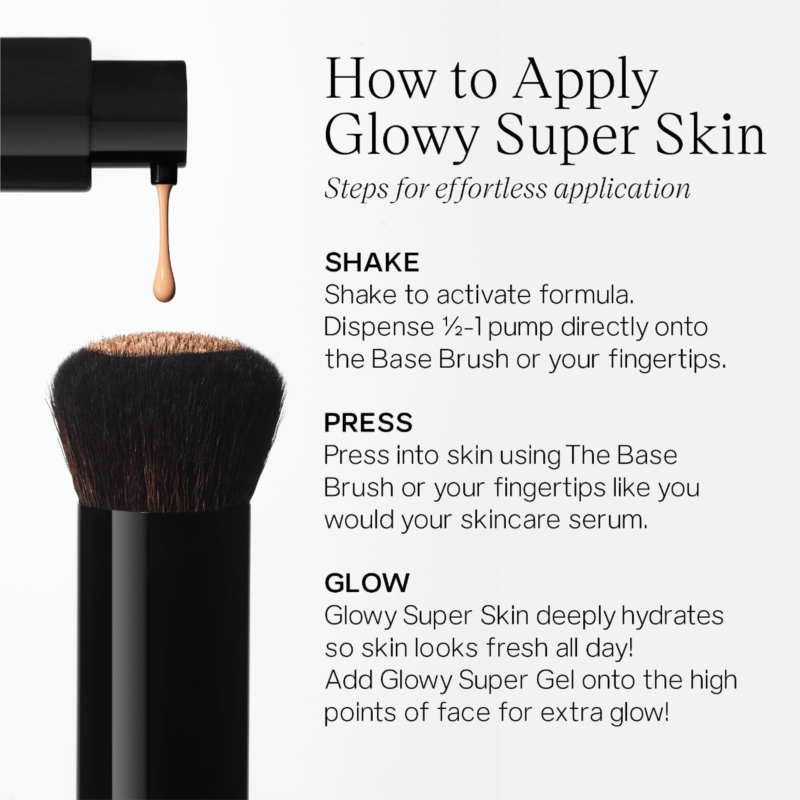 What Else You Need to Know: Comprised of 85 percent skincare ingredients and 15 percent weightless pigment, think of Glowy Super Skin as your hydrating skincare serum that has medium coverage and a luminous second-skin finish. Separation is natural, so always shake the bottle first. Glowy Super Skin is vegan, dermatologist tested, safe for sensitive skin, and fragrance free.