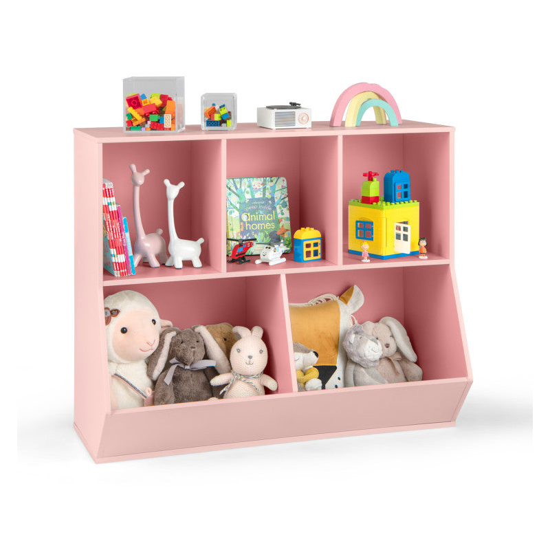 [US] Hivvago 5-cube wooden kids toy storage organizer with anti-tipping kits-natural