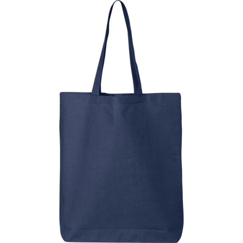6 oz./yd (US), 10 oz/L yd (CA), 100% cotton. 20'' self-fabric handles. 9'' handle drop. Bottom gusset.
