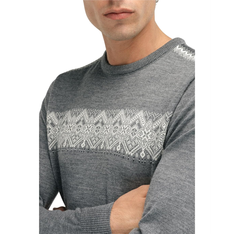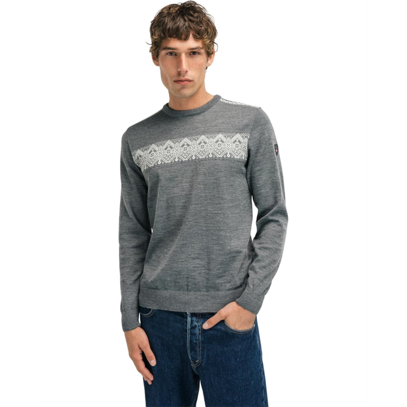 - The Dale of Norway Stenberg Sweater is a warm & breathable sweater for men, ideal as a mid-layer for winter sports. The skin-soft merino wool ensures maximum comfort, softness, and strength while keeping warmth in & allowing moisture to escape. The lightweight, regular-fit sweater features a crew neck, long sleeves with ribbed cuffs, and a straight ribbed hem. The 2-color pattern on the chest is inspired by ''Fiemme'' which was the 1991 World Cup sweater.