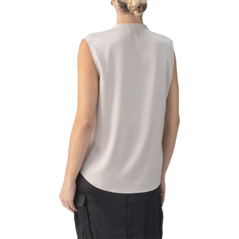 - Accentuate a stylish yet sophisticated vibe as you dress up in the Sanctuary Tie Neck Satin Shell Top. The pull-on style sleeveless top features a classic fit, tie-up neck, a solid pattern, and a standard length with a slightly curved hem.