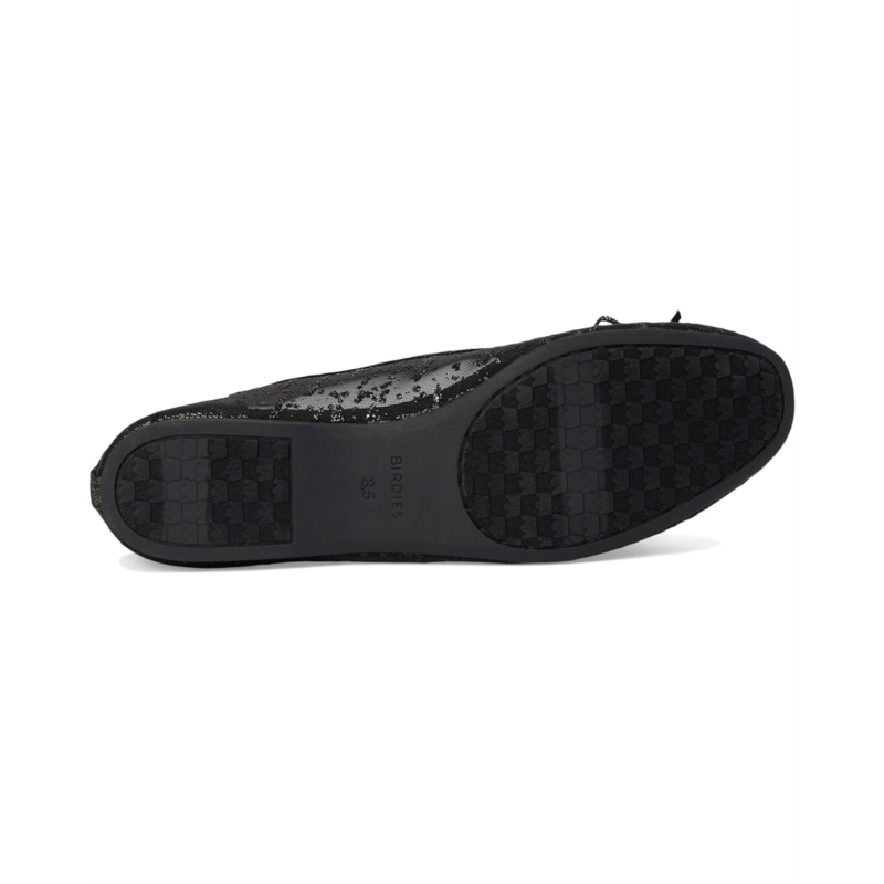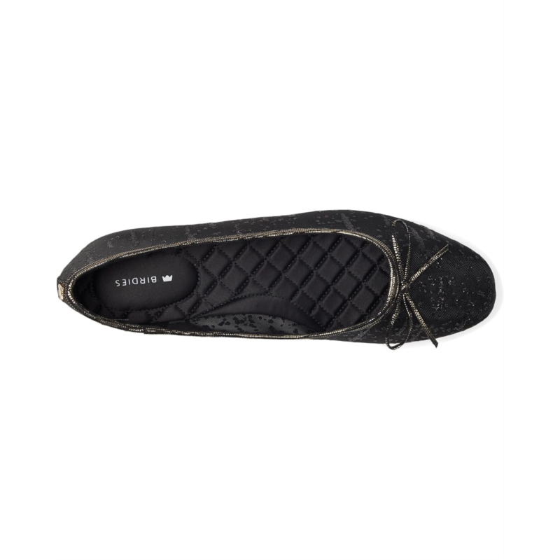 - Crafted of transparent mesh fabric with metallic flecks for added sparkle and shine, the Songbird Ballet Flat is the it-girl shoe of the season. Featuring a higher throat for a feminine feel, pretty textured metallic binding and a feminine bow to top it all off. The silhouette was crafted with Barefoot-Ballerina technology, which includes a completely flexible satin footbed that bends with you as if you are barefoot, but still offers full arch support and seven layers of cloud-like comfort. The flat is complete with the signature grosgrain back tab and gold Birdies logo.