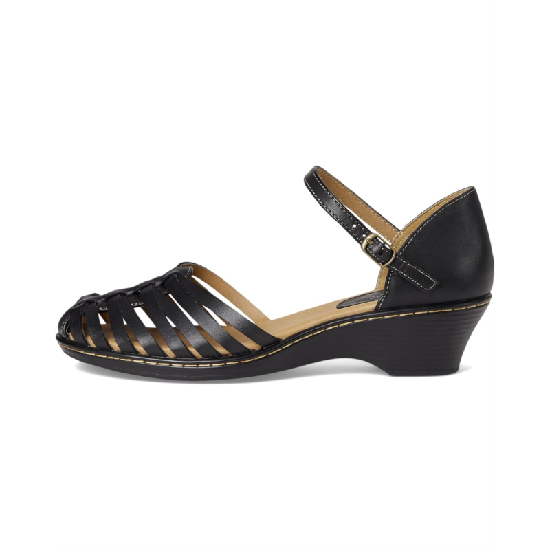 • Adjustable ankle strap with antique brass buckle for a personal fit.