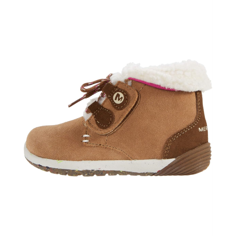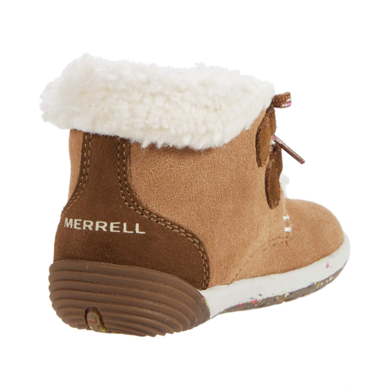 - When you bundle up your toddler don''t forget these stylish, adorable Merrell Kids Bare Steps Cocoa (Toddler), which meet every need while providing comfort and warmth for your little one. This environmentally friendly and on-trend bootie has an extra-wide toe box and a memory foam footbed for all-day comfort. The alternative closure strap with adjustable laces provides an easy and secure fit, while the rounded outsole follows the natural shape of a child''s foot.