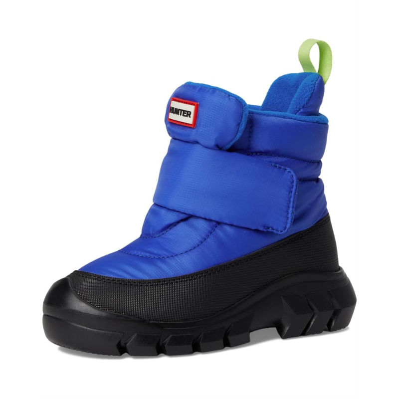 - Adventure-ready, rain or shine! The Hunter Kids Igloo boots keep little feet cozy and dry with a waterproof nylon upper and breathable fleece lining. These ankle-high boots feature a hook-and-loop closure for easy on-and-off, while the molded EVA footbed offers maximum comfort on every step. A durable rubber outsole ensures steady traction, no matter the terrain, while the round-toe design gives plenty of wiggle room. Made for puddle jumping, outdoor exploring, and chilly days alike, these boots are the perfect blend of warmth, durability, and easy-going style-keeping young adventurers ready for anything the weather throws their way!