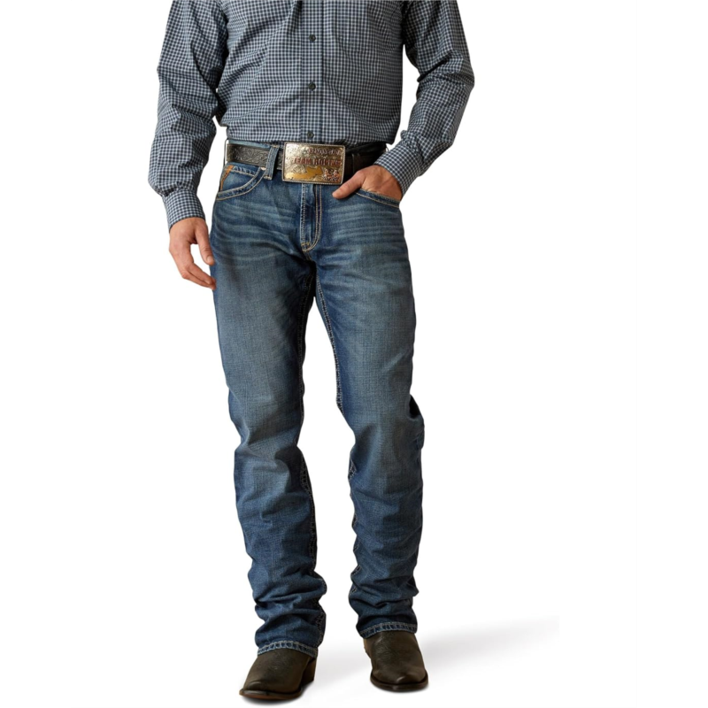 - Stay true to timeless style wearing Ariat M4 Relaxed Nate Boot Cut Jeans. These jeans bring rugged charm and effortless comfort together in a way that''s built for your everyday adventures. The low-rise waist and straight-leg cut offer a laid-back yet modern fit, making them perfect for both work and casual wear. The five-pocket design and durable belt loops provide utility without sacrificing style, while the zip-fly and button closure ensure a secure, classic fit. Crafted for those who value comfort, these jeans pull on with ease, giving you maximum freedom of movement.