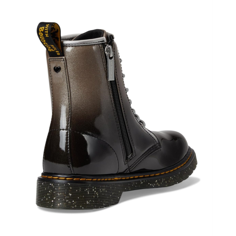 - Constructed from an eye-catching gradient glitter material, the Dr. Marten''s Kid''s Collection 1460 Glitter Youth boot boasts a colorshifting, super-sparkly look. Finished with a zippered side panel, the ankle-high footwear has a padded collar to keep little feet comfortable. A scripted heel loop is designed with a wider and more rounded toe shape.