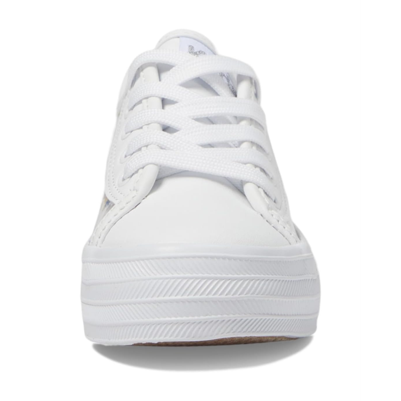 - Make every move a statement styling Keds Kids Triple UP-Glitter Under Glas! Elevate your style game with leather luxury from top to bottom-upper, insole, and outsole-for ultimate comfort and durability. The polyester lining ensures a snug fit, while the lace-up closure offers secure wear for active days. Step into a world of glittering confidence and unmatched style. With Keds Triple Up, you''re not just stepping up; you''re sitting pretty on your high pedestal, ruling the playground with unmatched flair and comfort.
