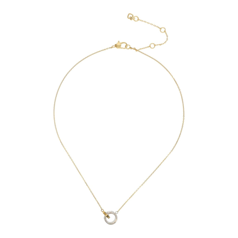 - Introducing the Kate Spade New York Set In Stone Pendant, crafted from high-quality stainless steel and brass. It features an interlink pendant and adjustable lobster clasp closure for an ideal fit.