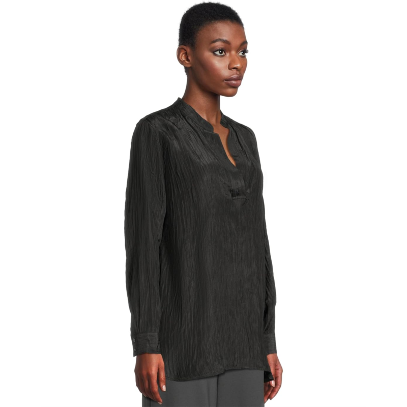 - Redefine your wardrobe essentials with EILEEN FISHER Mandarin Collar Tunic. Step into timeless sophistication with this effortlessly chic tunic. Featuring a graceful mandarin collar neck and long sleeves, it''s designed for a relaxed yet polished look. The pull-on style ensures comfort and ease, while subtle side slits add movement and flair. Perfect for workdays or weekend outings, this versatile tunic pairs beautifully with tailored pants or casual leggings.