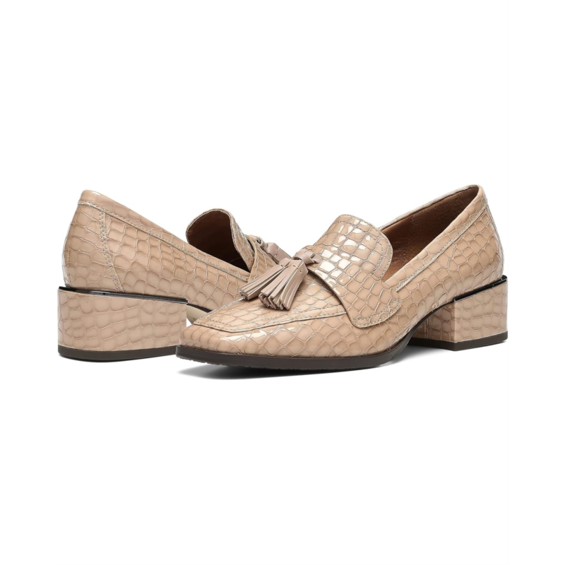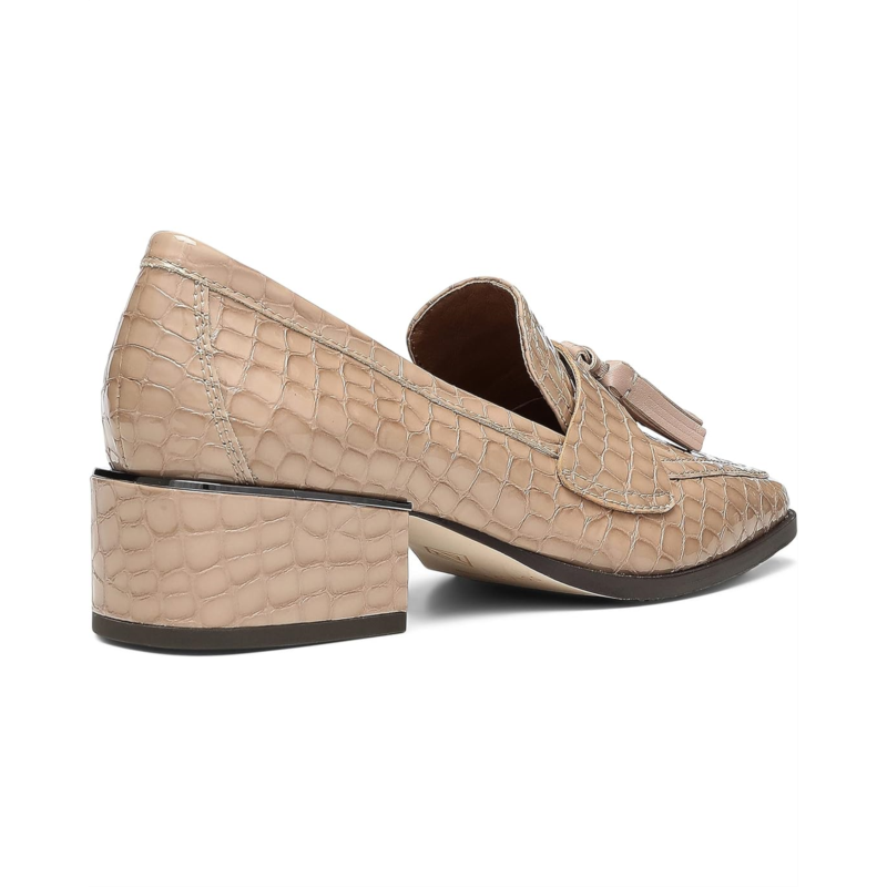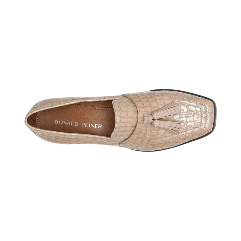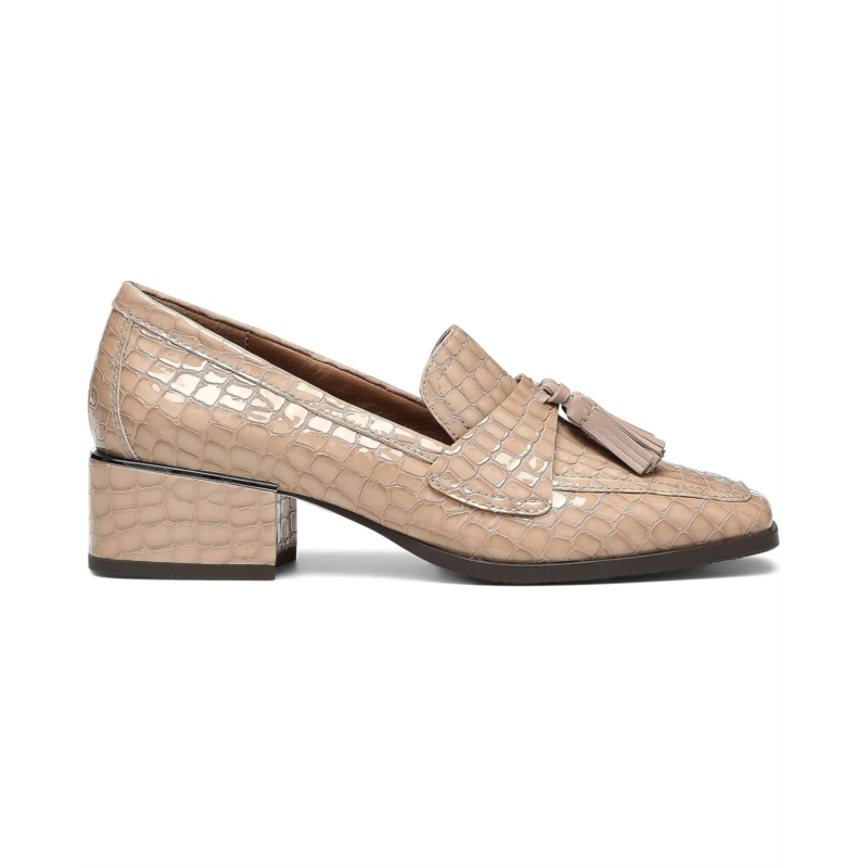 - Croc-embossed leather upper with bow-tie and fringed tassel detailing.