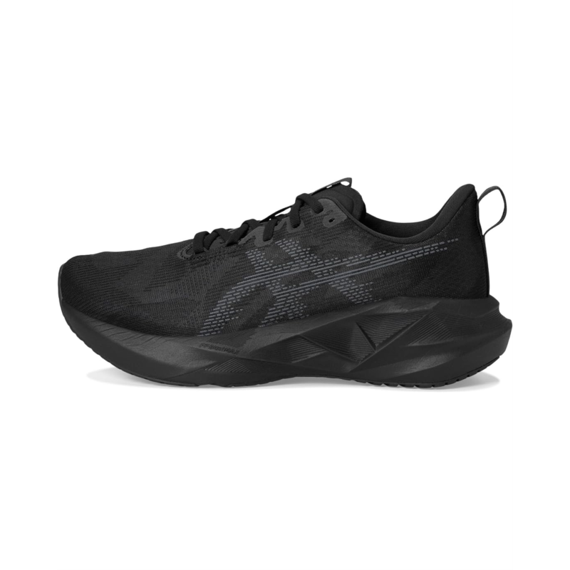- The ASICS Novablast 5 shoes'' midsole and outsole geometry help produce an energized ride. Their tongue wing construction in the polyester upper helps improve the fit while reducing tongue movement. These running shoes are made of a rubber insole and polyester lining. At least 75% of the shoe''s main upper material is made with recycled materials to reduce waste and carbon emissions while the sockliner is produced with the solution dyeing process that reduces water usage by approximately 33% and carbon emissions by approximately 45% compared to the conventional dyeing technology. The FF BLAST MAX cushioning helps create softer landings and more energized toe-off during your training. These lace-up shoes are complemented with an engineered jacquard upper that offers more stretch, ventilation, and durability.