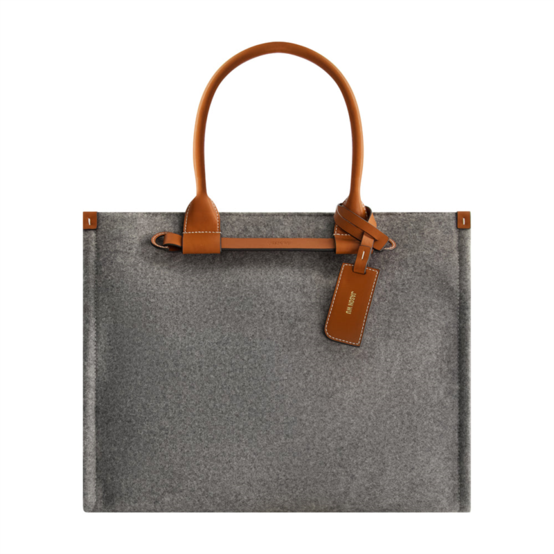 Elevate your everyday style with the Jason Wu Structured Grey Felt Tote, a sophisticated blend of timeless design and modern functionality. Featuring a sleek felt exterior accented with rich brown handles and polished details, this tote is both chic and practical. Whether you''re heading to the office or running errands, this Jason Wu tote is a versatile addition to your wardrobe. A modern essential for anyone with an eye for refined style.-Officially licensed Jason Wu Bag-10'' handle drop-Gold Hardware-Secure zip closure for a chic, streamlined look-Interiior back wall zip pocket, Front wall slip pocket-Includes a protective Jason Wu white draw string dust bag 29''Hx 24''W -Material Body ? 100% Cow leather, body ? 100% Blended yarn (Arco wool + cotton poly)-Lining- 100% polyester -Dimension - 13H X 15.5W X 6.5D-Weight 1 lbs.-Imported