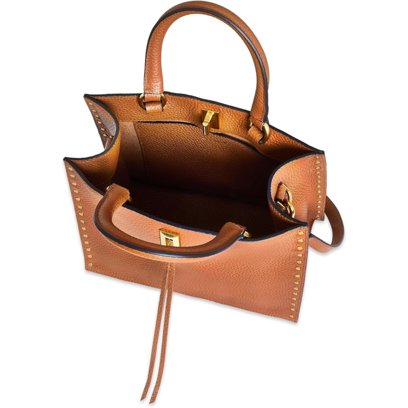 - The Rebecca Minkoff Darren Small Tote combines elegance with functionality. Its structured silhouette and spacious interior make it ideal for daily use, while the high-quality leather ensures durability. This tote purse comes with a twist lock closure. The dual top handles and an adjustable shoulder strap allow you to style it in multiple ways. This stylish tote is perfect to pair with different outfits and looks.