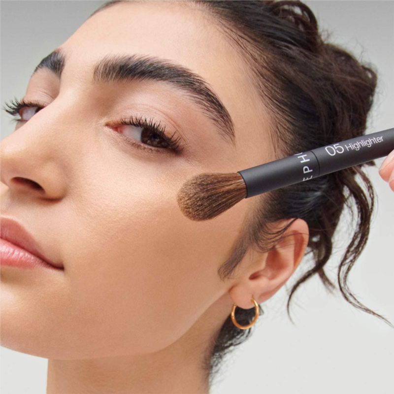 What it is: A small, tapered face brush that is best for precise highlighter application.