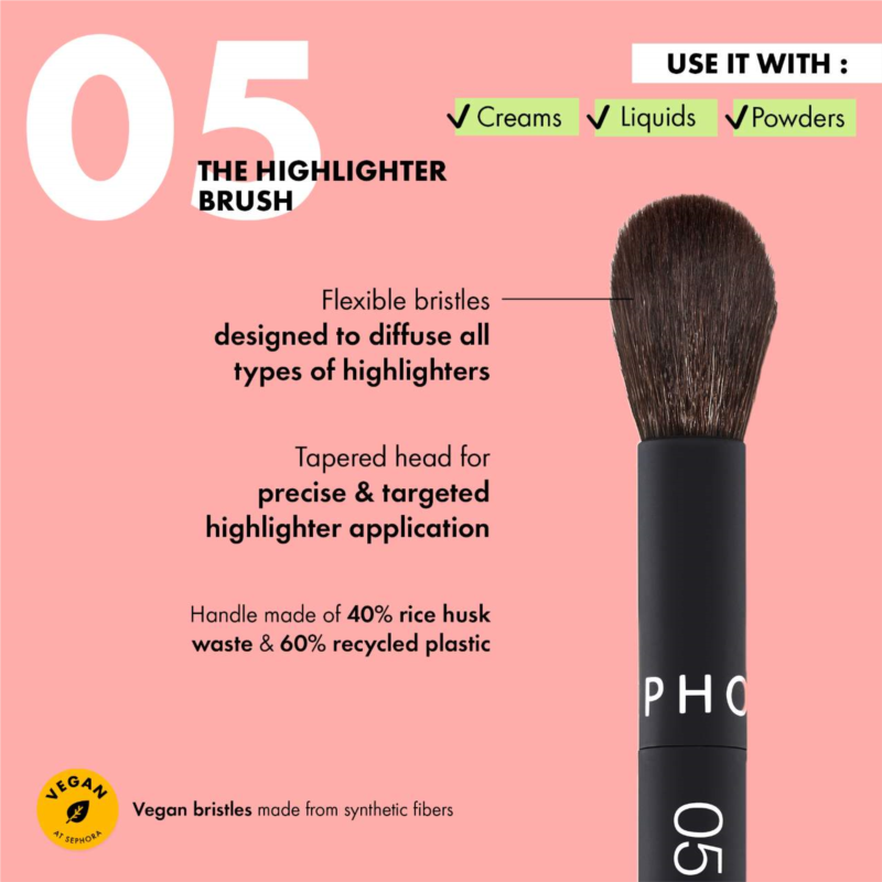 What Else You Need to Know: The SEPHORA COLLECTION Highlighter Brush is your go-to brush for a flawless glow effortlessly in just one swipe. Its small and tapered head guarantees a precise highlighter application for a seamless makeup result. The design ensures that your highlight always hits the right spot so you can easily and seamlessly apply your product with precision.