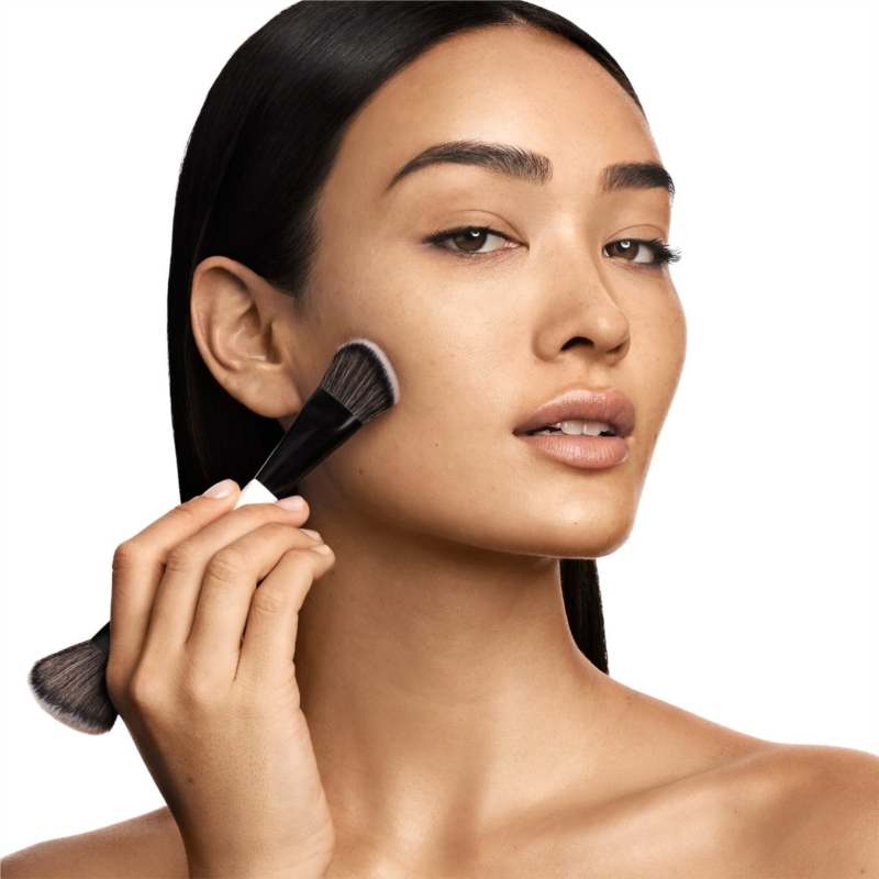 What Else You Need to Know: The large end of this brush features a uniquely sloped shape that perfectly hugs the curves of the face for an effortless application and seamless blending. The compact brush end also offers more controlled application and helps easily build and layer foundation to the desired level of coverage.